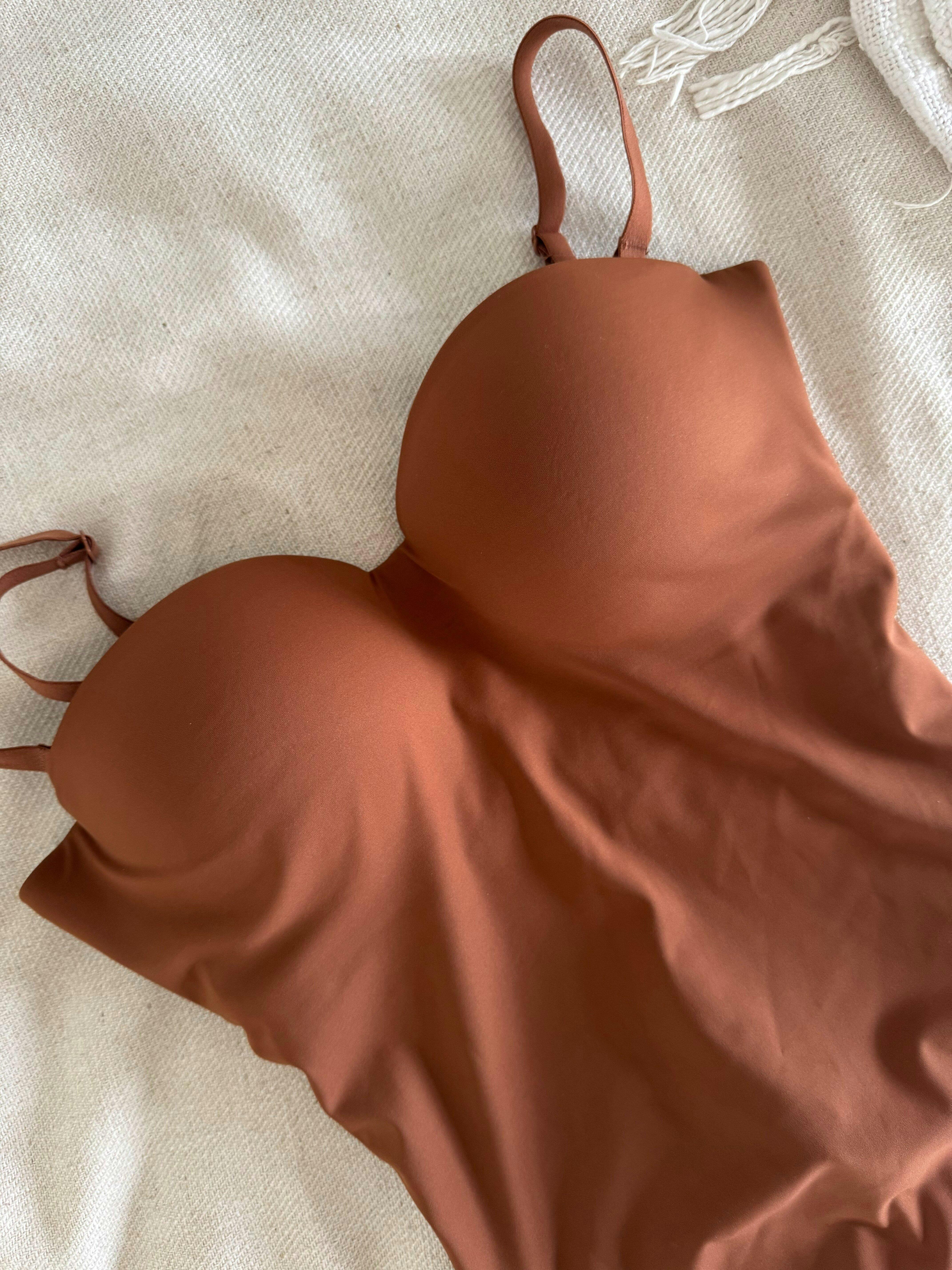 Featuring molded, lightly lined cups with built-in underwire, it lifts and shapes while offering a natural, secure fit. The double-layered compression fabric smooths the waist and flattens the tummy, while anti-slip silicone ensures everything stays perfectly in place — even when worn strapless.